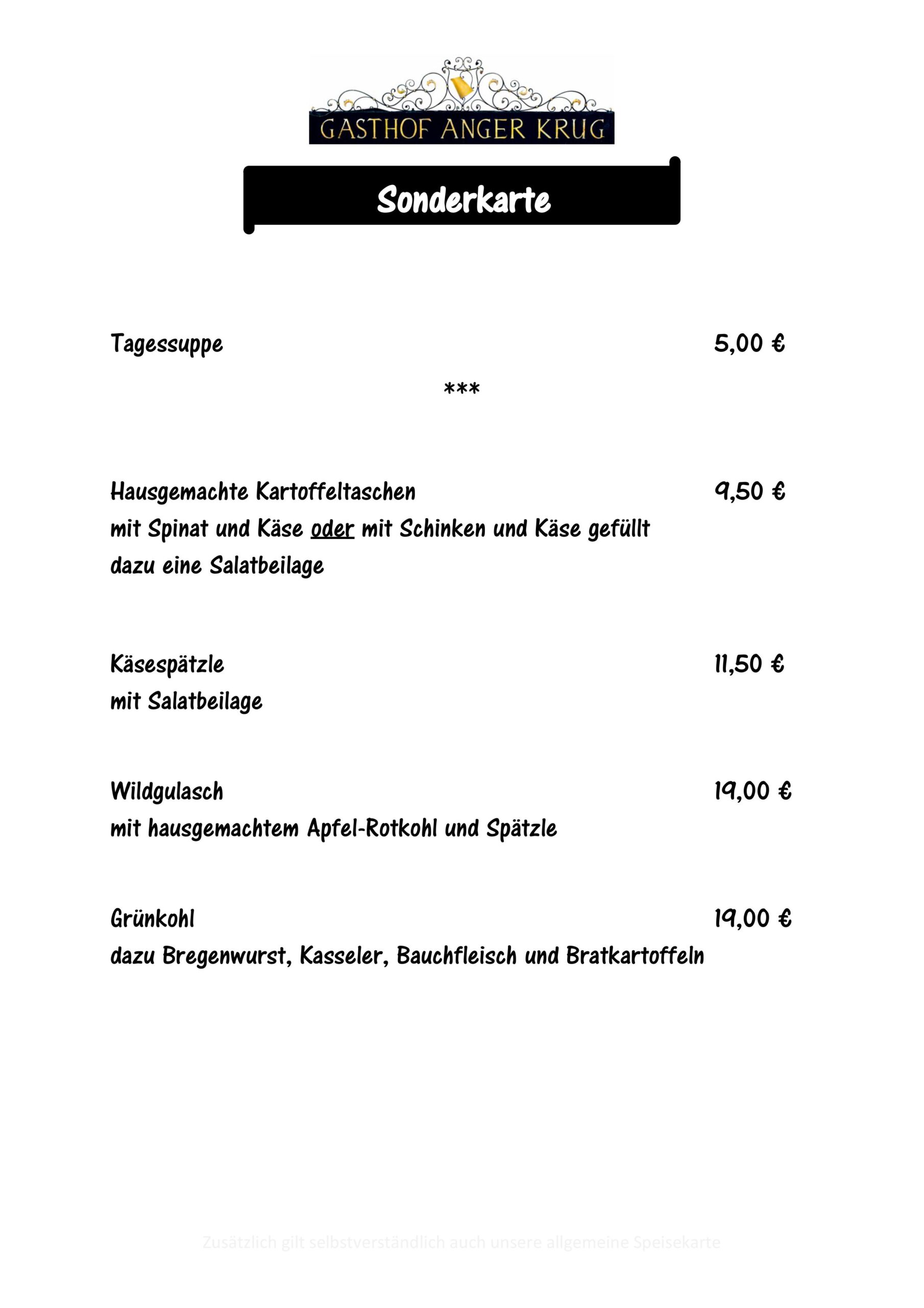 Momentan haben wir wieder ganz normal für euch geöffnet und bieten euch jeden Monat eine neue Sonderkarte.